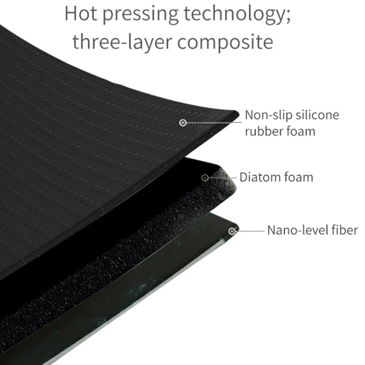 8. Made of silicone rubber foam anti-slip layer, diatomite foam layer and nano-microfiber layer through hot pressing process