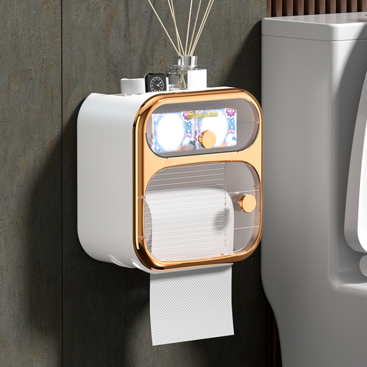 Bathroom Wall Mounted Waterproof Shelf Tissue Box, Color: