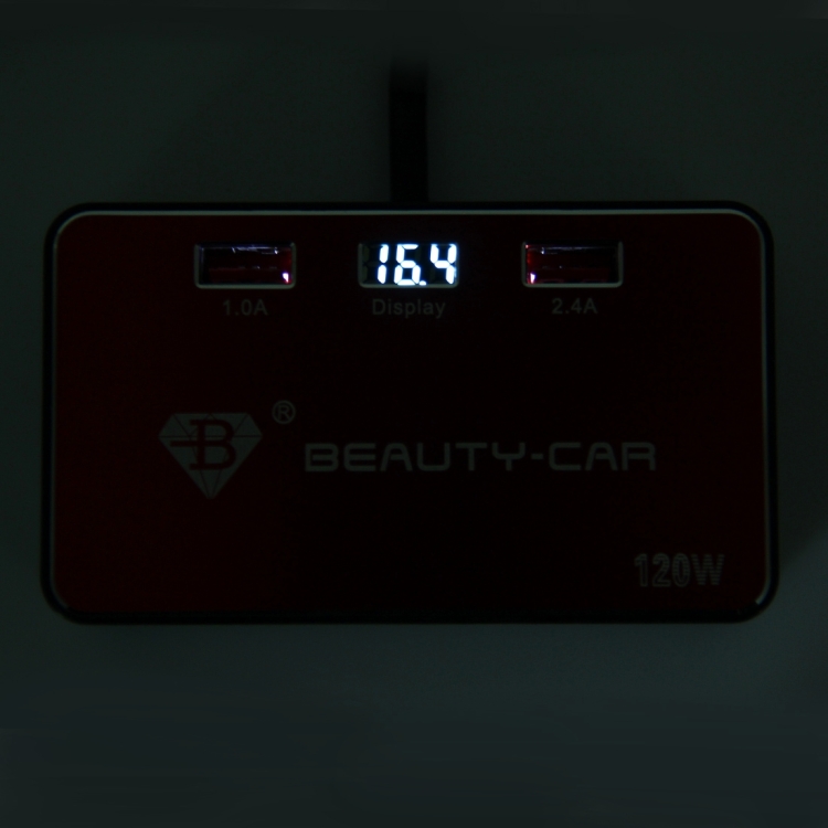 BEAUTY-CAR B-085 ABS Shell 120W 3 Sockets Car Cigarette Lighter Car Charger with 3.4A Dual USB Ports and Indicator LED Display, Input Voltage/Output Voltage: DC 10-30V/DC 5V