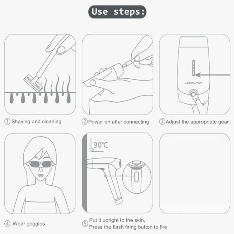 5. Warm hint: depilation device is for hair follicles, it takes some time, not immediately effective when use.