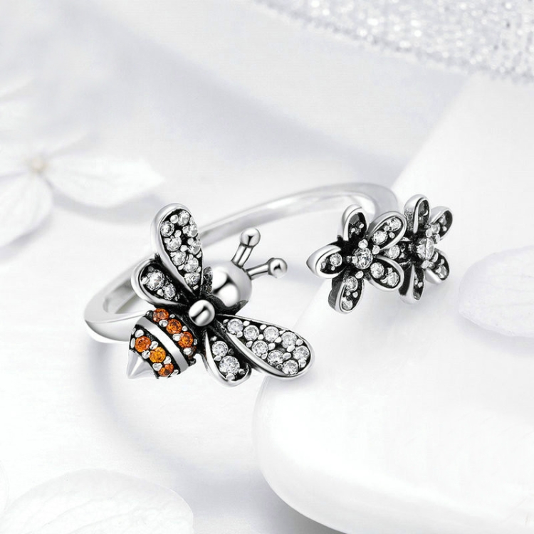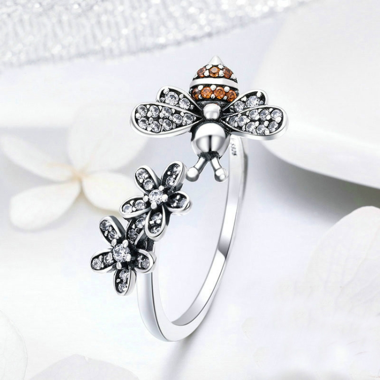 Bee Story Inlaid Zircon S925 Sterling Silver Ring