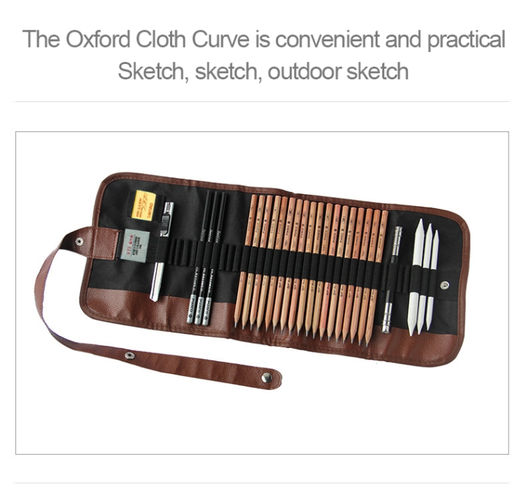 5. Included: 18*pencils, 3*charcoal pencils, 1*4B eraser, 1*plastic rubber, 1*staedtler, 1*canvas pencils curtain, 3*stumps, 1*art knife.