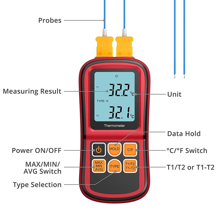 BENETECH GM1312 2.4 inch LCD Screen Thermocouple Thermometer Measure J,K,T,E,N and R Type, Measure Range: -50~300C