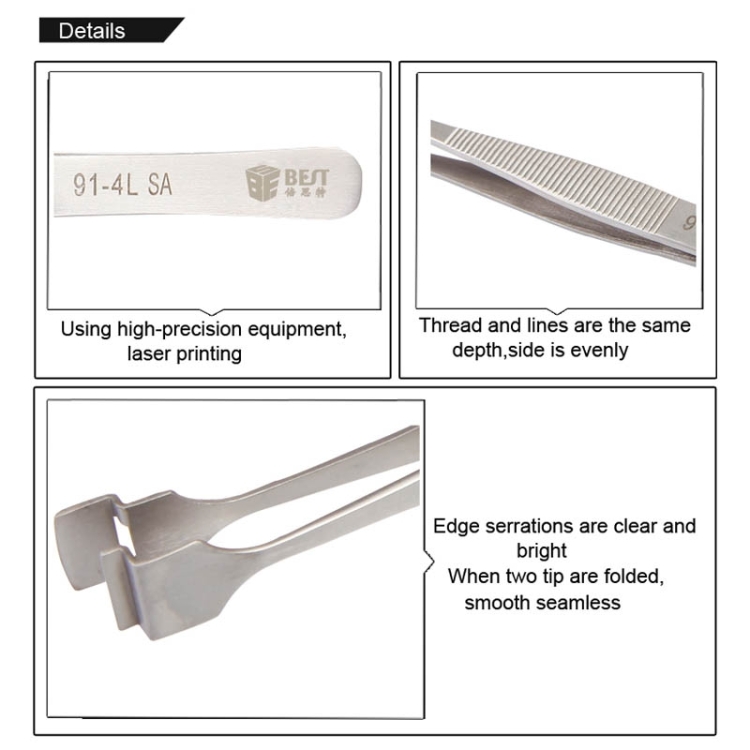 BEST BST-91-4L SA Professional Stainless Steel Wafer Tweezers for Silicon Wafer