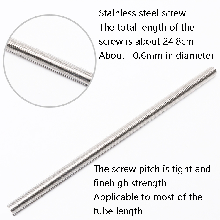 2. Stainless steel screw rod, the total length of the screw rod is about 24.8cm, the diameter is about 10.6mm, the screw pitch is close and detailed, the strength is high, and it is suitable for most of the tube length.