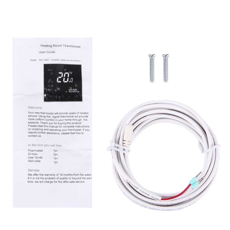 BHT-3001 16A Load Electronic Heating Type LCD Digital Heating Room Thermostat with Sensor, Display Clock / Temperature / Time / Week / Heat etc.