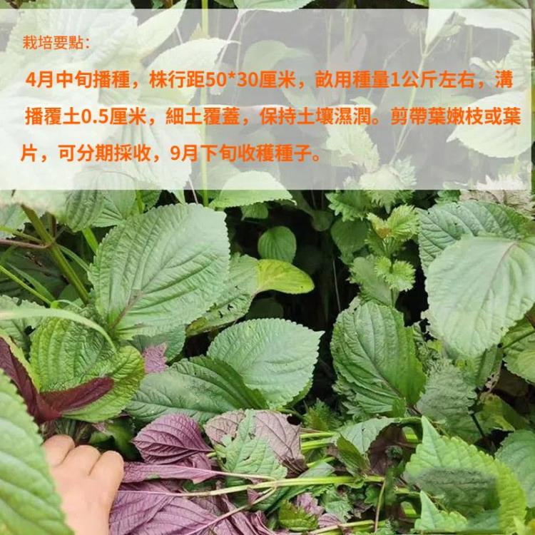 3. Characteristics: Annual herb, about 1 meter tall, with a unique aroma, quadrangular stems, many branches, opposite leaves, long petioles, elliptical or broadly ovate leaves, purple on the back. The corolla is white or purple-red, blooms and bears fruit in June, and can be dried or pickled, cold-mixed, or eaten fresh, with a unique flavor.