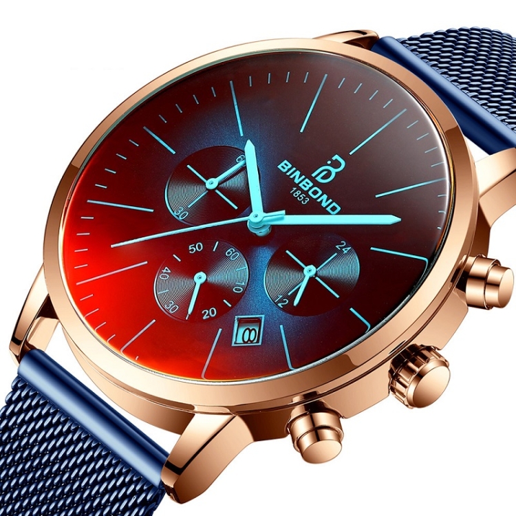 BINBONG B0135 Men Ultra-thin Three-eye Six-pin Multi-function Symphony Sports Watch