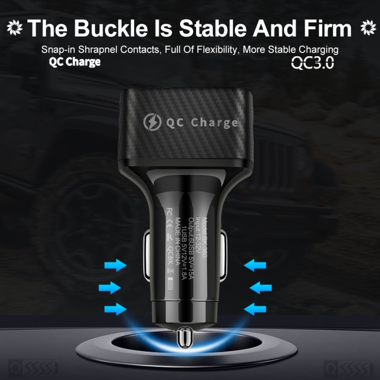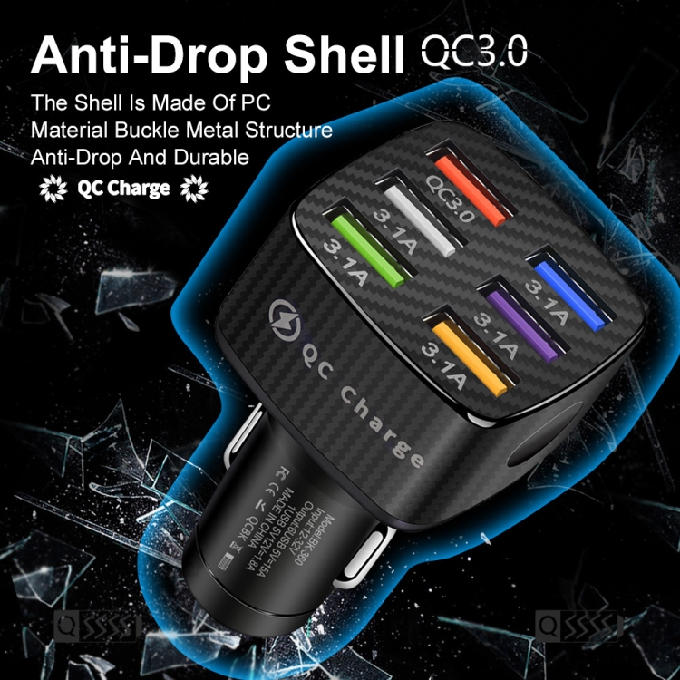 BK-360 6 in 1 QC3.0+3.1A USB luminescent Car Charger