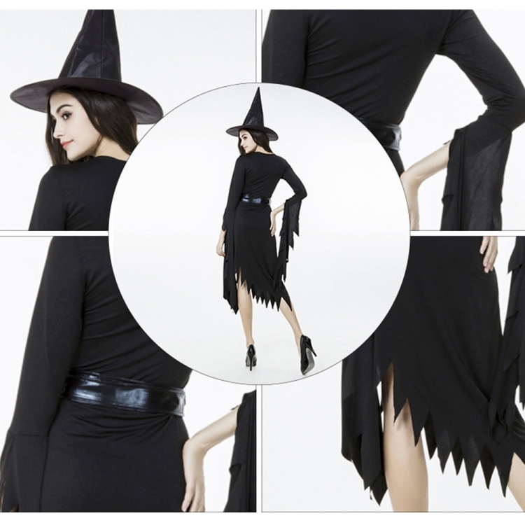 Black Irregular Long Skirt Exit Halloween Costume Cosplay Show Witchcraft Dress, M, Chest: 88cm, Waistline: 72cm, Skirt Length: 108cm