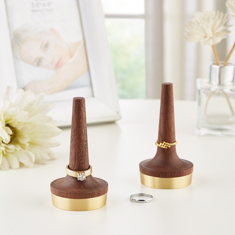 Black Walnut Wood With Brass Stand Ring Holder For Jewelry