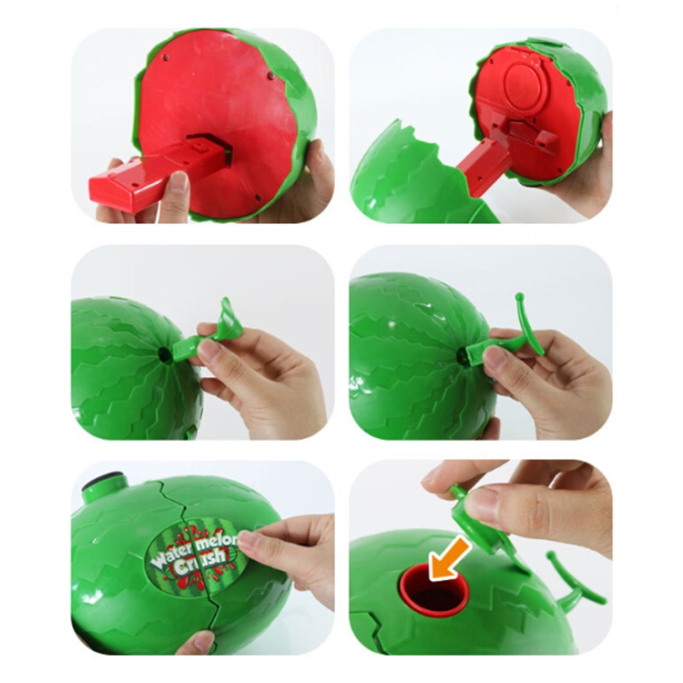5. How to play: Put a proper amount of water into the watermelon dispenser, rotate the dial pointer, and operate according to the steps shown by the pointer until the watermelon explodes