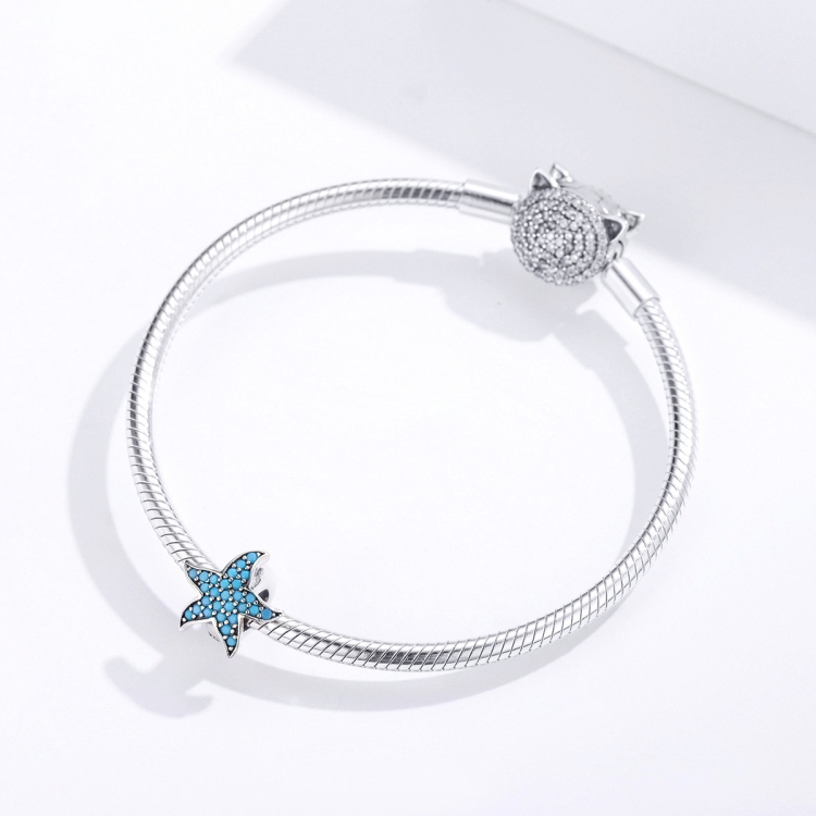 Blue Full Diamond Starfish Beaded Sterling Silver S925 Loose Beads DIY Bracelet Silver Beads