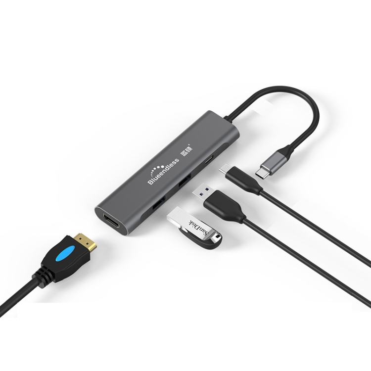 Blueendless 4 In 1 Multi-function Type-C / USB-C to HDMI + PD + Dual USB 3.0 HUB Expansion Dock