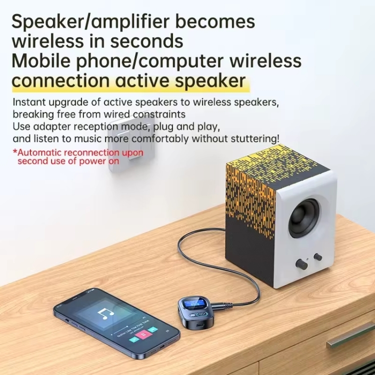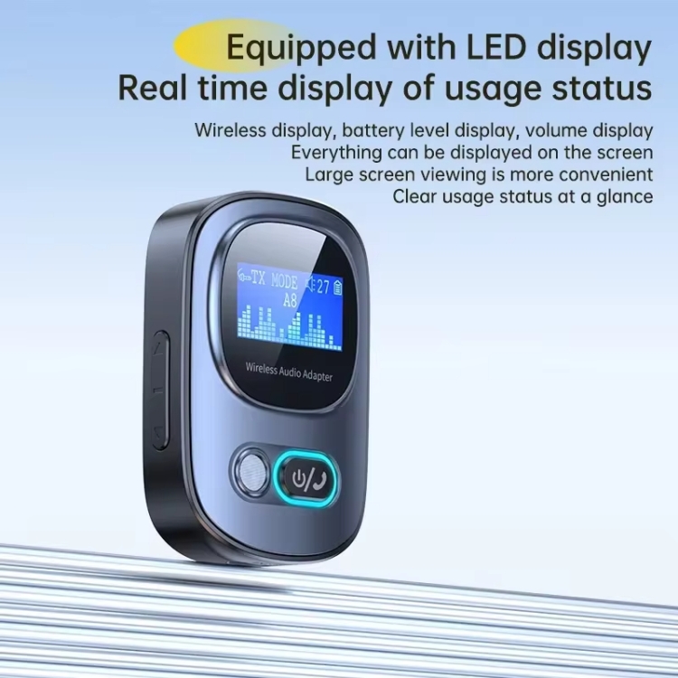 1. High-definition LED screen digital display Bluetooth adapter, connected to an audio playback device with a speaker, receives Bluetooth signals to play music wirelessly; connected to an audio output device, transmits Bluetooth signals, and plays music through paired wireless headphones Bluetooth speakers (receiving and transmitting signals can only be selected one by one, and cannot be used at the same time)