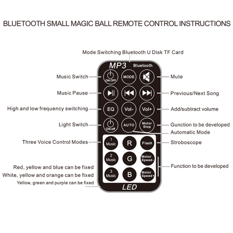 5. Music mode: MP3, Bluetooth, TF card, remote control switch