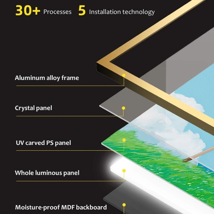 3. 5-layer three-dimensional mounting, light aluminum alloy metal frame, brushed texture, moth-proof, moisture-proof, and deformation-proof