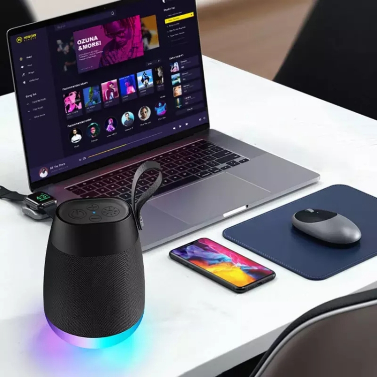 Bluetooth Wireless Fabric Speaker Cylindrical Waterproof Subwoofer With RGB Light