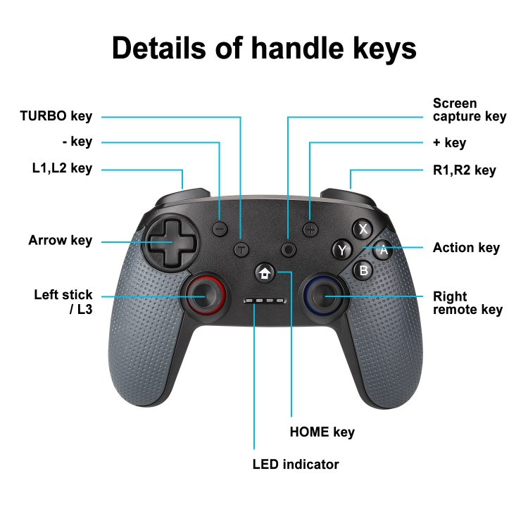 Bluetooth Wireless Gamepad Built-In Dual Motors With TURBO Function Suitable For Switch Pro