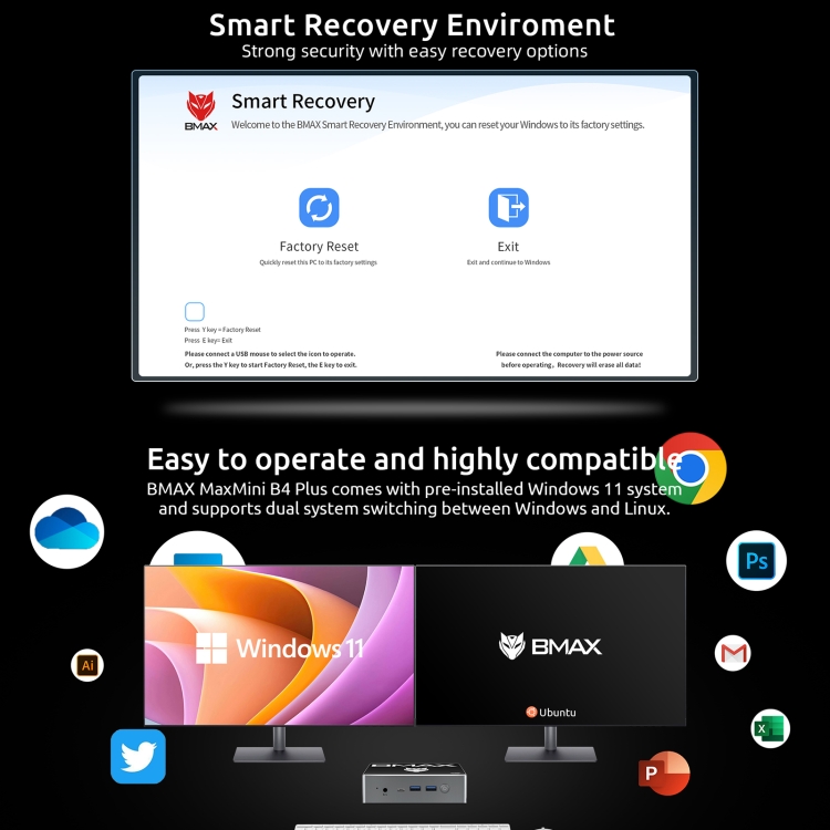 BMAX B4 Plus Windows 11 Mini PC, Intel Alder Lake N100, Support Dual HDMI / RJ45