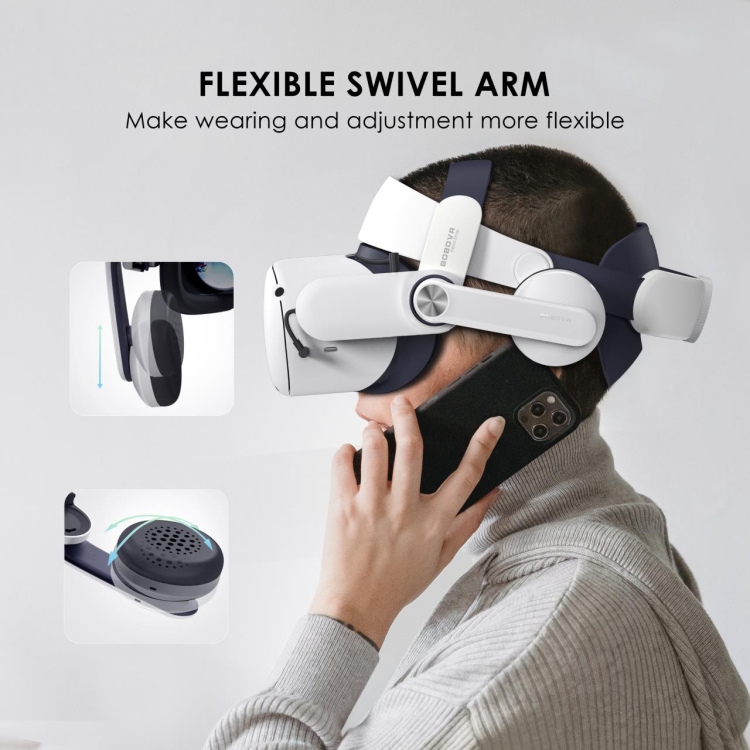 4. Flexible swivel arm: The swivel arm can be rotated by 65 degree, and the earphone part has a 2cm up and down adjustment and a 15 degree tilt adjustment, making it more convenient to wear and adjust. During gaming, if you want to relax your ears or take a call, you can swivel the earcups over your ears without removing the entire VR rig.