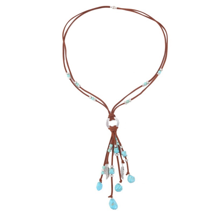 Bohemian Turquoise Natural Stone Sweater Vintage Pendant, Model: