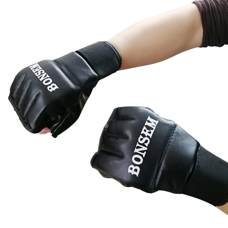 BONSEM Half Fingers PU Leather Adults Sandbag Training Boxing Gloves