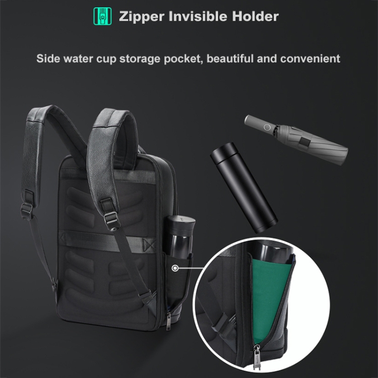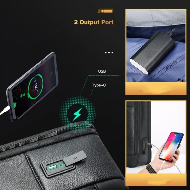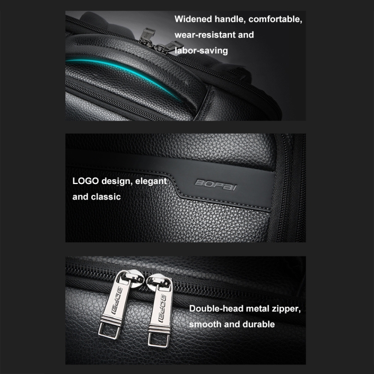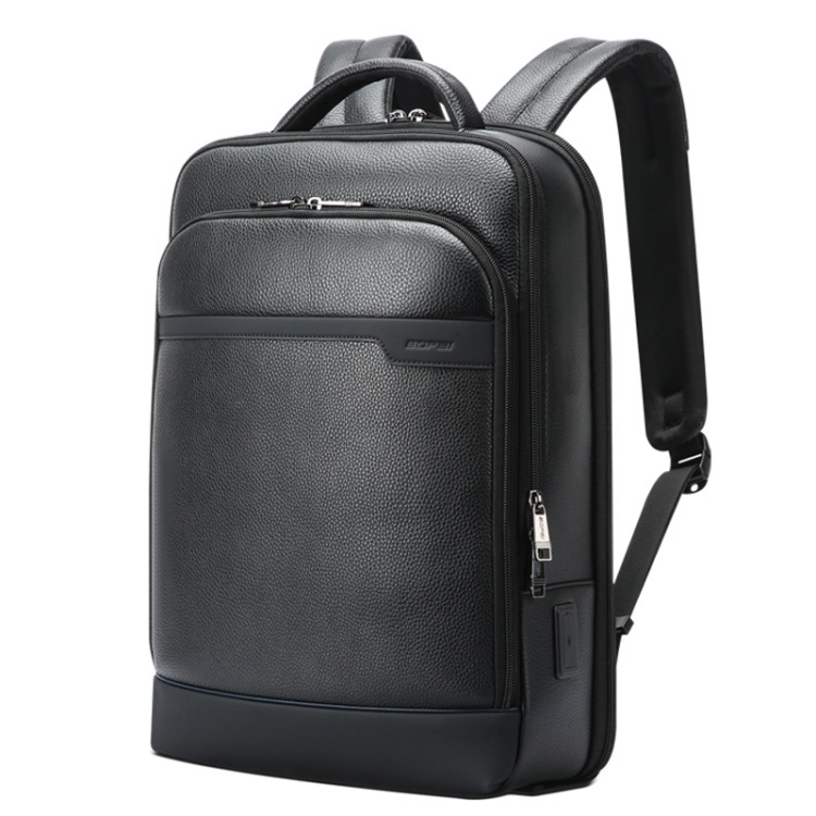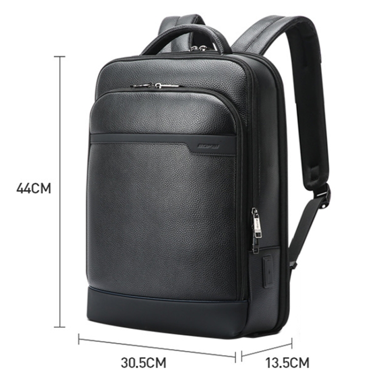 Bopai 61-122391 Large-capacity First-layer Cowhide Business Laptop Backpack With USB+Type-C Port