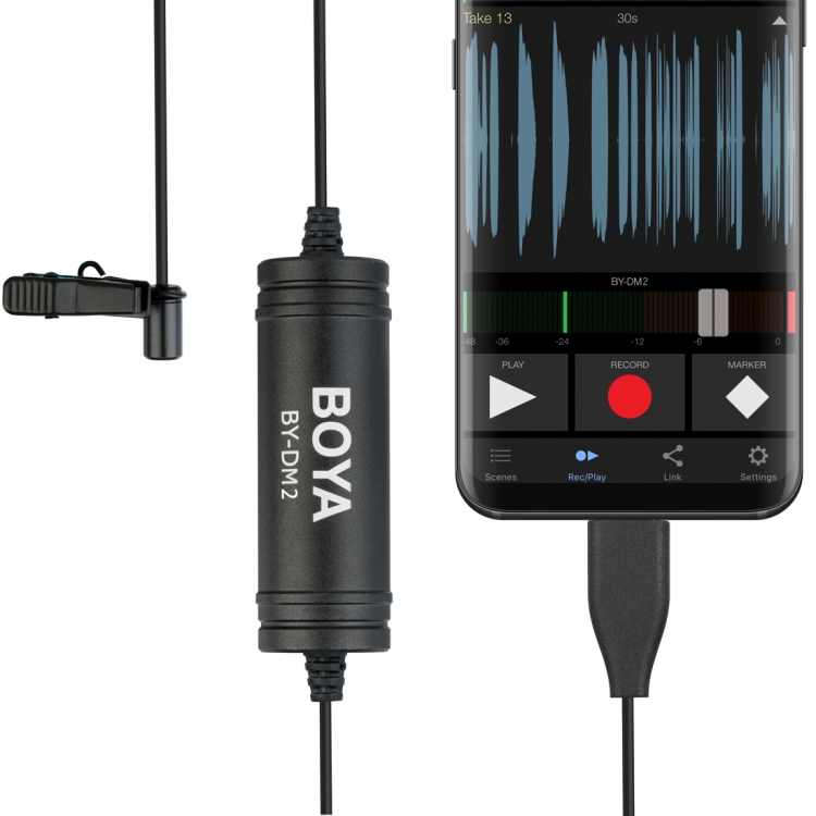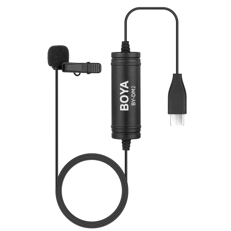 BOYA BY-DM2 USB-C / Type-C Broadcast Lavalier Condenser Microphone with Windscreen for Android Phones / Tablets
