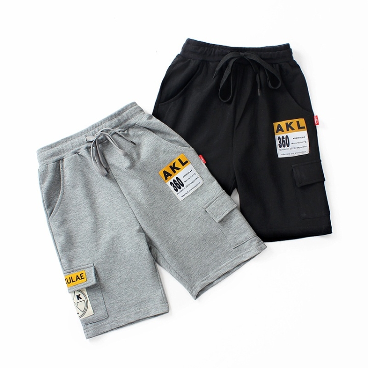 Boys Fashion Label Short Pants Overalls (Color:Grey Size:150cm), 120cm, 130cm, 140cm, 150cm, 160cm