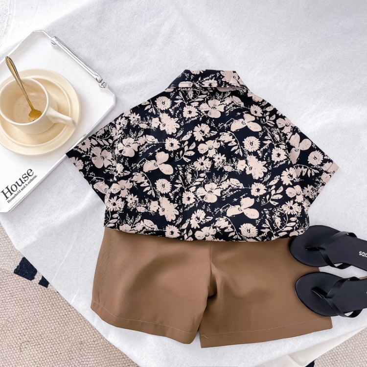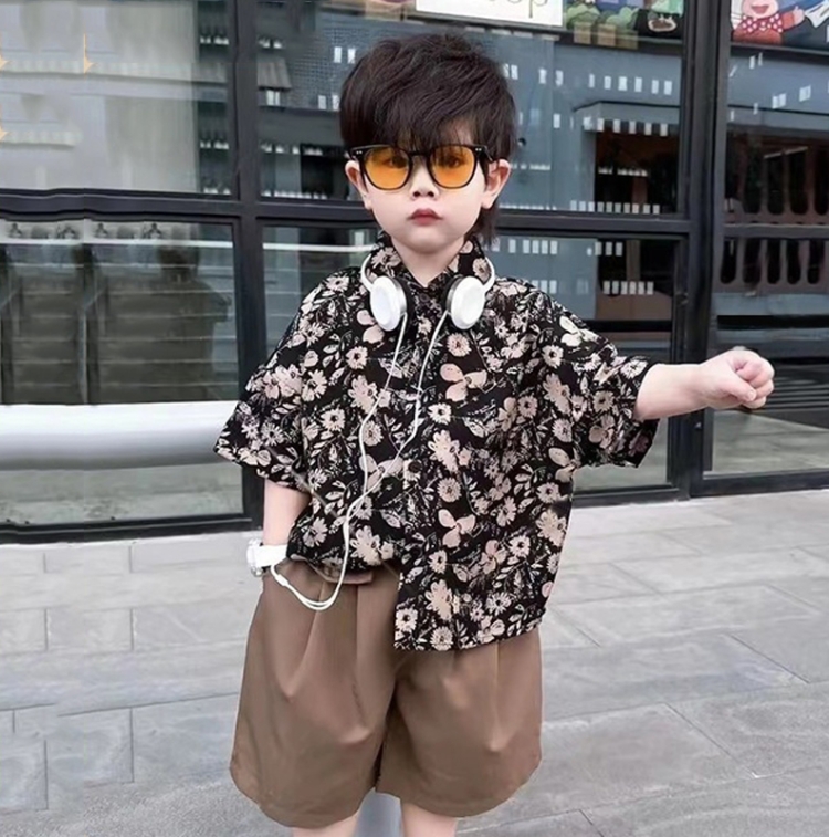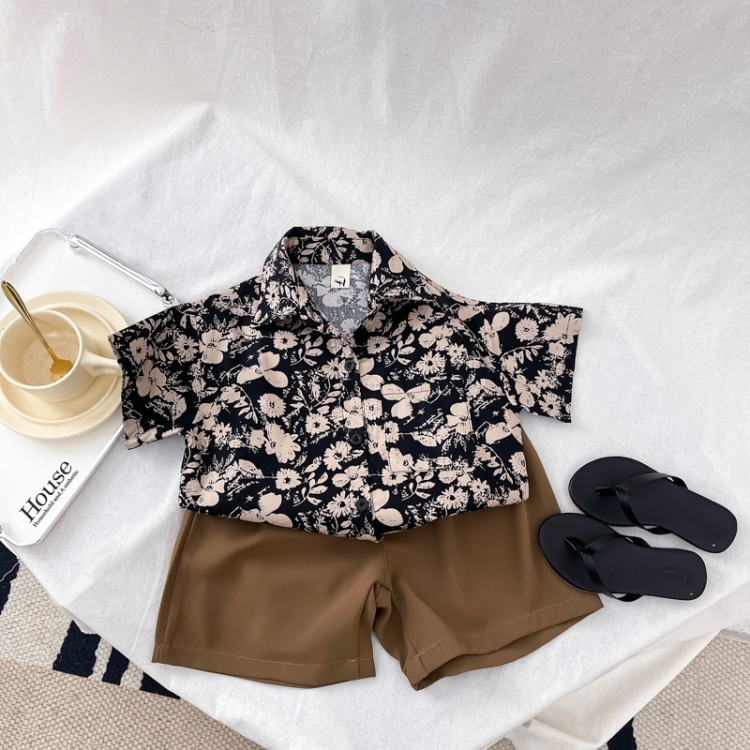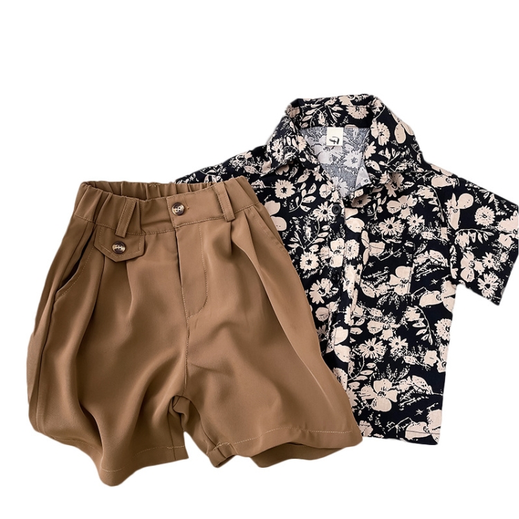 Boys Floral Shirt + Shorts Pants Set Summer Thin Children Short-sleeved Shirt