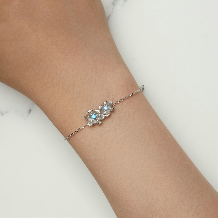 BSB138 925 Sterling Silver Zircon Blue Floret Bracelet