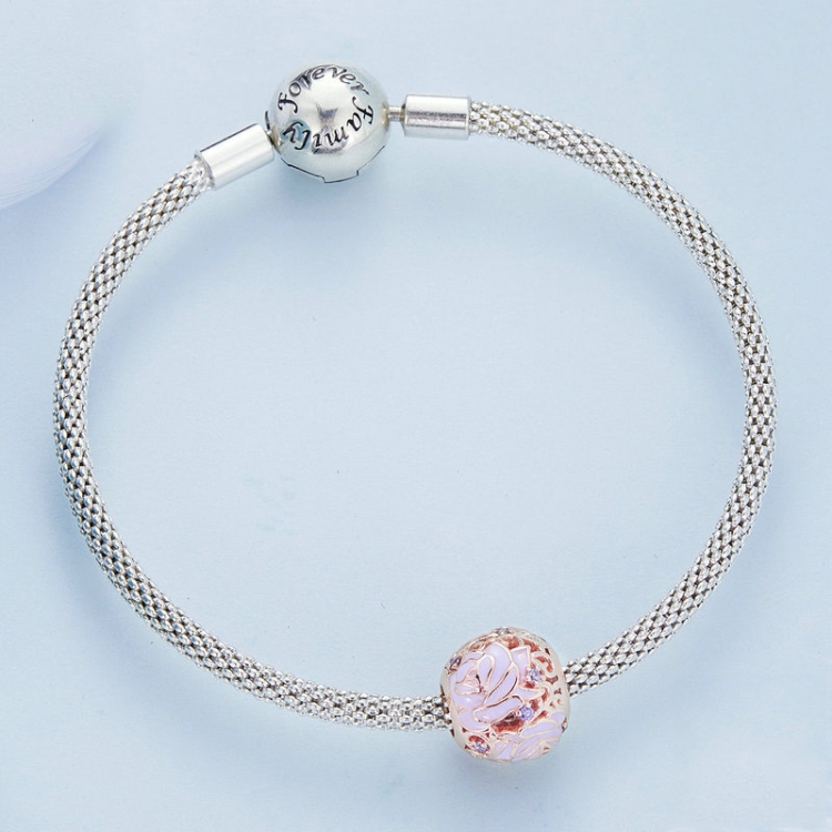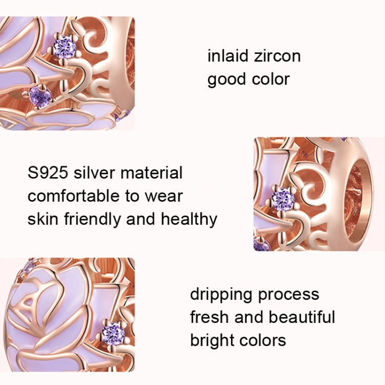 BSC644 S925 Silver Purple Rose Beads Electroplating Hollow DIY Bead Accessories