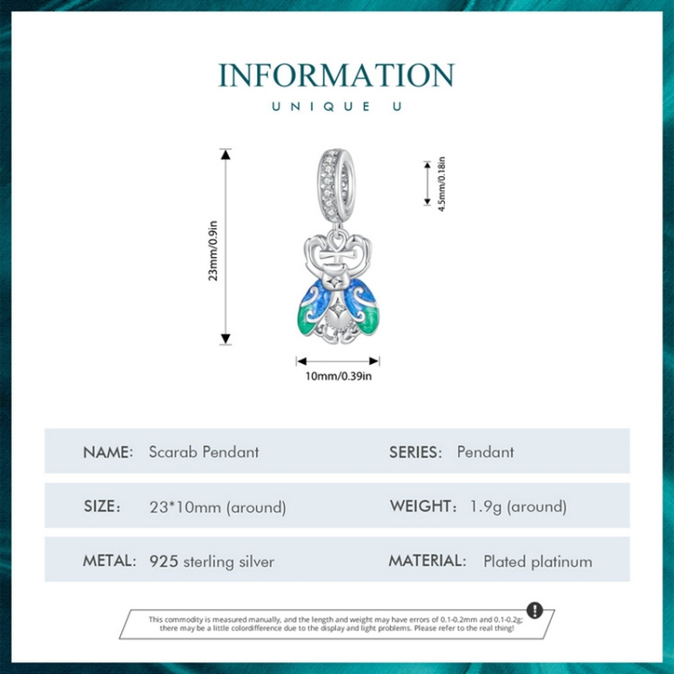 BSC881 S925 Sterling Silver Gradient Scarab Pendant Accessories DIY Bracelet Beads