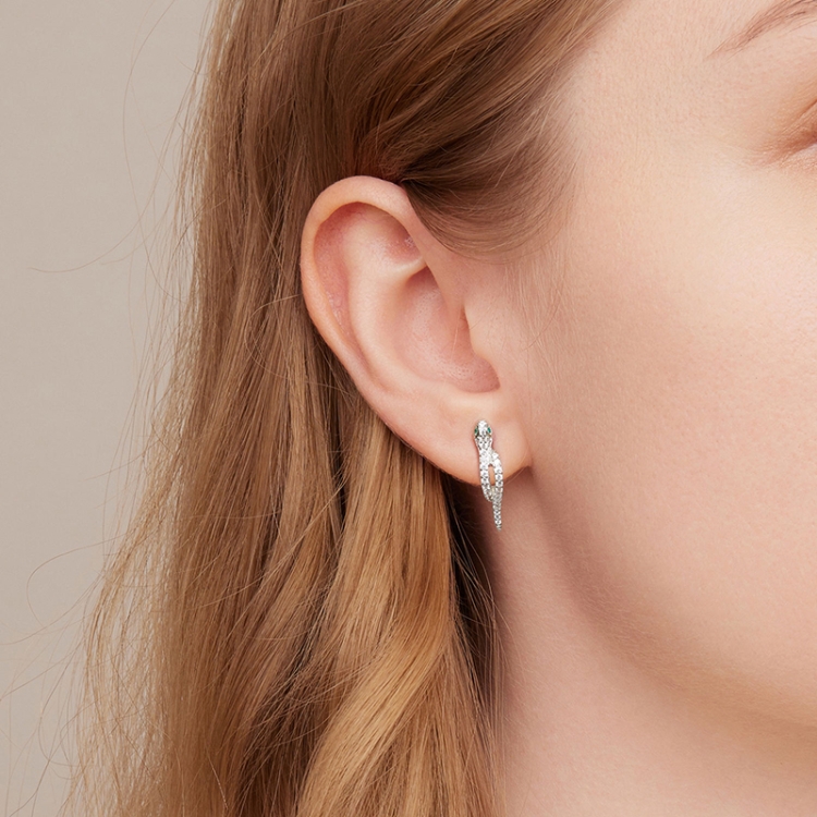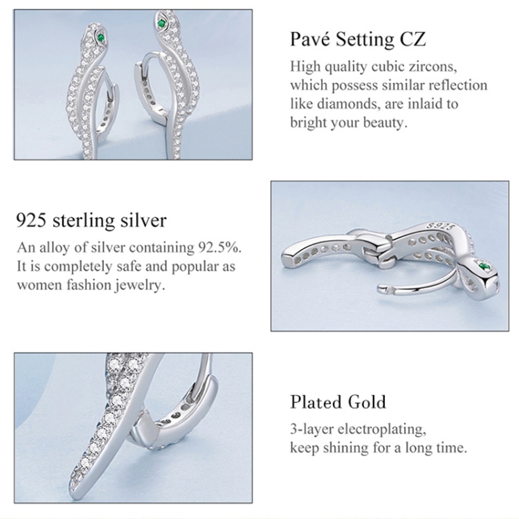 BSE669 Sterling Silver S925 White Gold Plated Zircon Snake Earrings