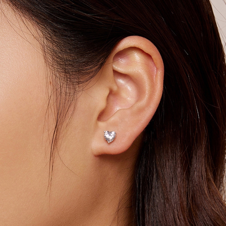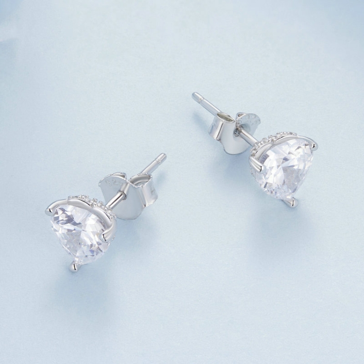 BSE853 Sterling Silver S925 White Gold Plated Sparkling Heart Stud Earrings