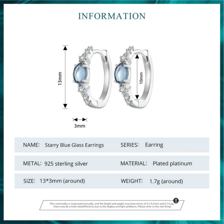 Be the first to review “BSE859 Sterling Silver S925 White Gold Plated Zircon Star Blue Glass Earrings”