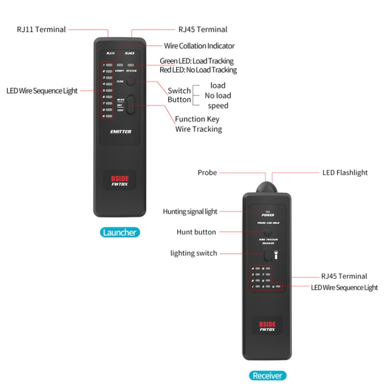 BSIDE FWT8X Dual Mode Network Wire Tracker Cable Toner RJ45 RJ11 Accurate Ethernet LAN Tracer