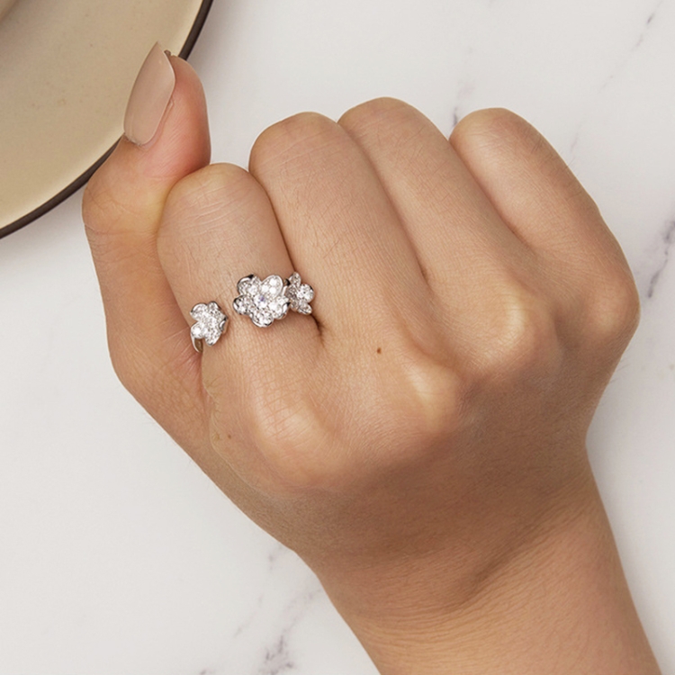 BSR447 Sterling Silver S925 Plated White Gold Fully Paved Zircon Flower Open Adjustable Ring