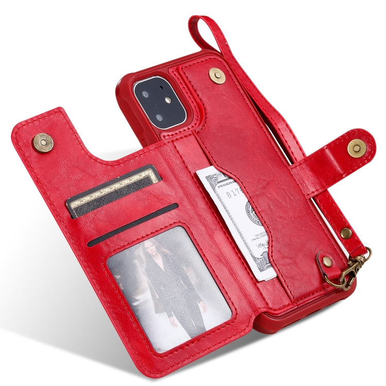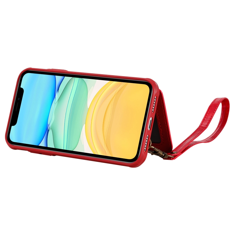 Buckle Zipper Shockproof Protective Case with Holder & Card Slots & Wallet & Lanyard & Photos Frame