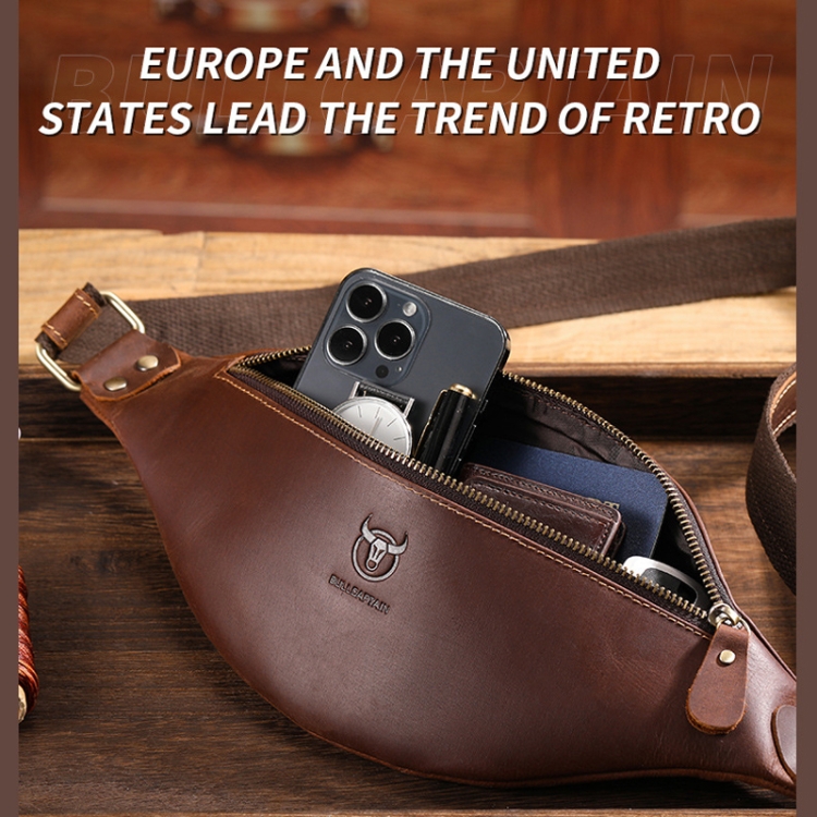 Bull Captain Retro Crazy Horse Leather Men Waist Bag Shoulder Bag Crossbody Bag
