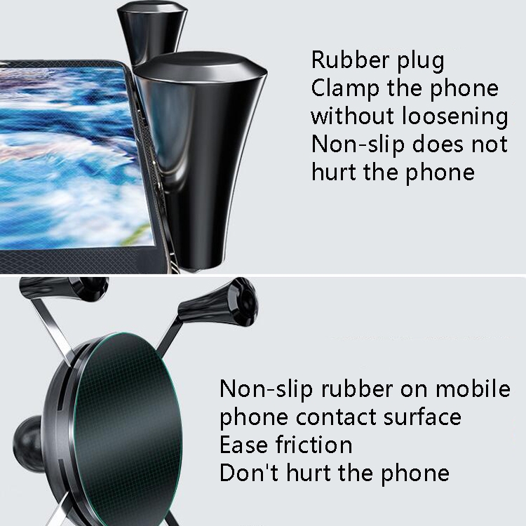 7. Features: thick rubber cushion to protect the mobile phone from hurting the car, high-hardness rubber universal ball, stable clamping, no sound, 360-degree rotatable, suction cup switch paddle, easy to disassemble