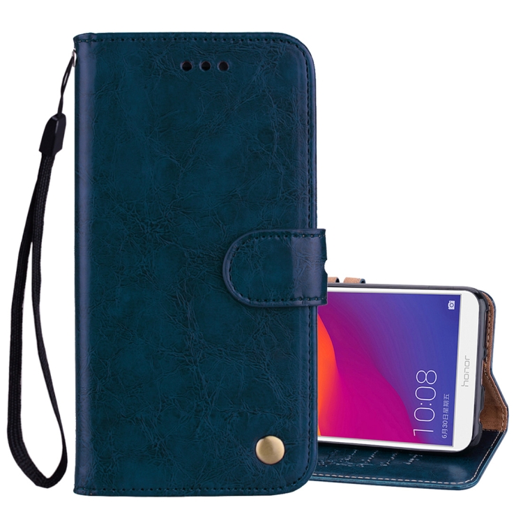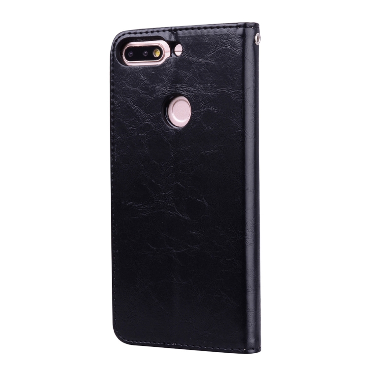 Business Style Oil Wax Texture Horizontal Flip Leather Case for Huawei Honor 7C / Enjoy 8 / Y7 (2018) / Y7 Prime (2018) / Nova 2 Lite, with Holder & Card Slots & Wallet