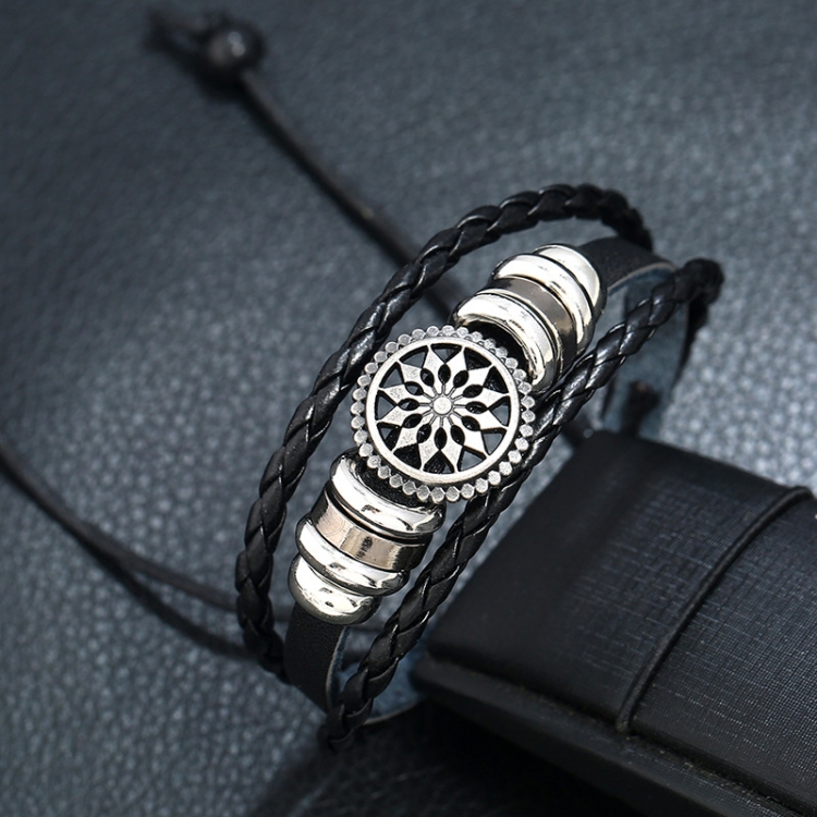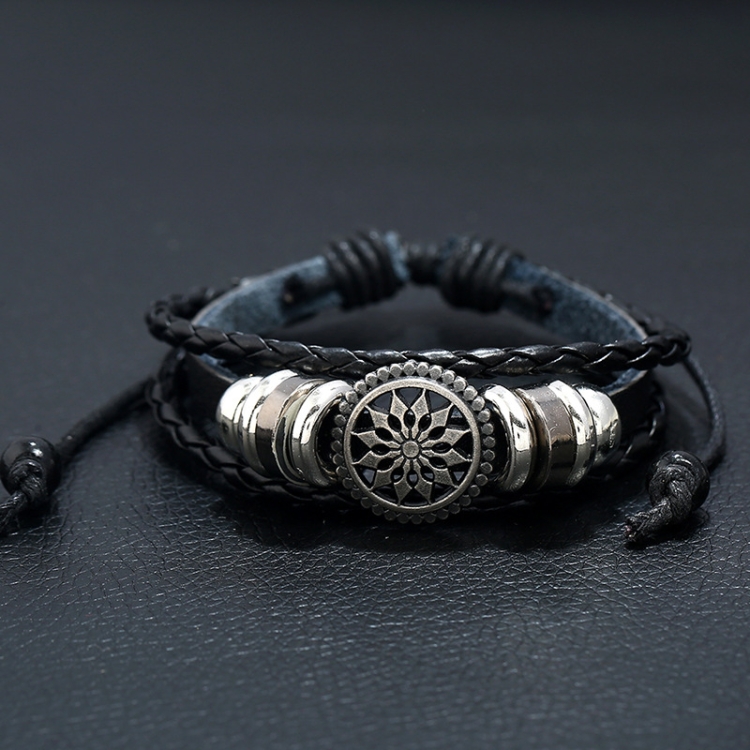 BX222 Sun Flower Beads Leather Personality Knitting Adjustable Bracelet