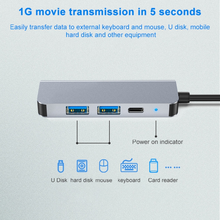 BYL-2011 4 In 1 USB-C / Type-C To 4K HDMI + USB 3.0 + USB 2.0 + PD USB-C / Type-C Charging Ports Multifunctional HUB Docking Station