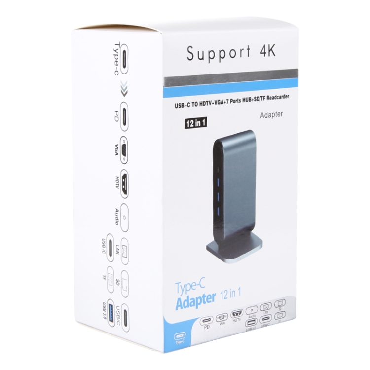5. Interface: Type-C+USB3.0x4+PD100W+VGA/1080P+4K+LAN+FT/SD card+3.5mm