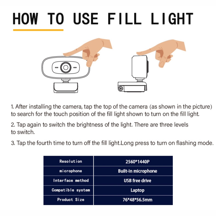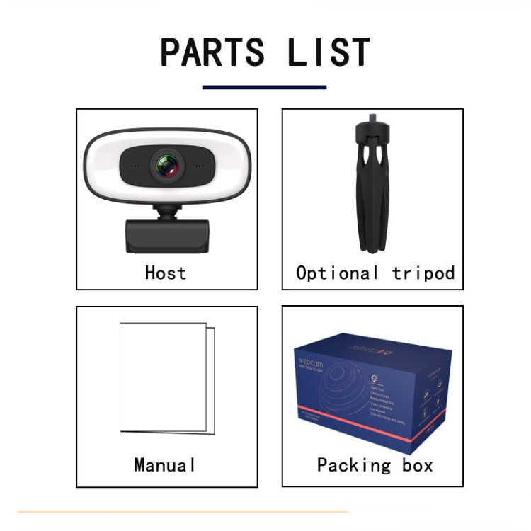C10 2K HD Without Distortion 360 Degrees Rotate Three-speed Fill Light USB Free Drive Webcams, Built-in Sound Clearer Microphone