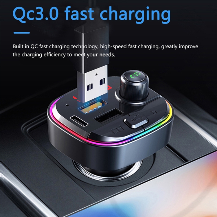 C13 Multifunctional Car Dual USB PD Fast Charger Bluetooth FM Transmitter with Atmosphere Light