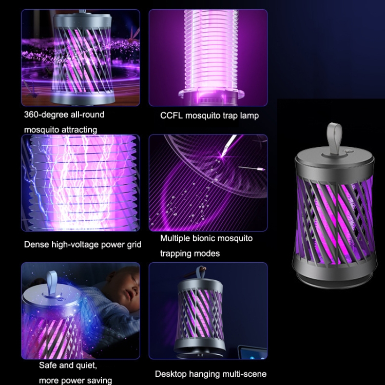 1. Bionic mosquito attracting, 360-degree purple light attracting mosquitoes, high-voltage safety grid