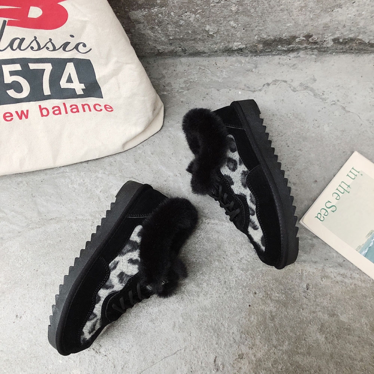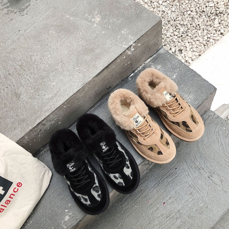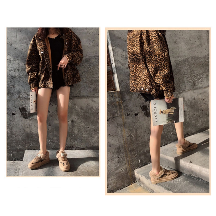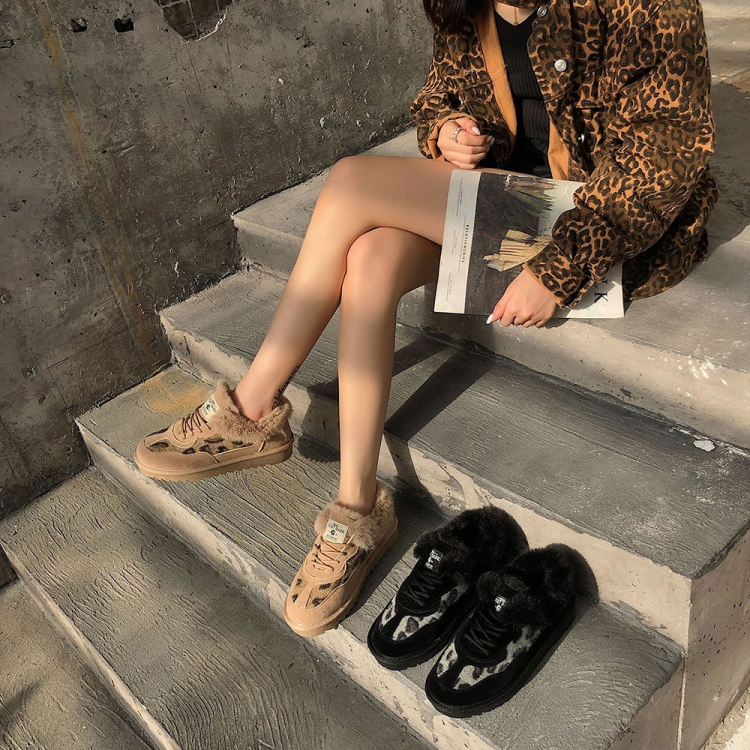 C18 Autumn and Winter Round Toe Leopard Print Fleece Warm Snow Boots